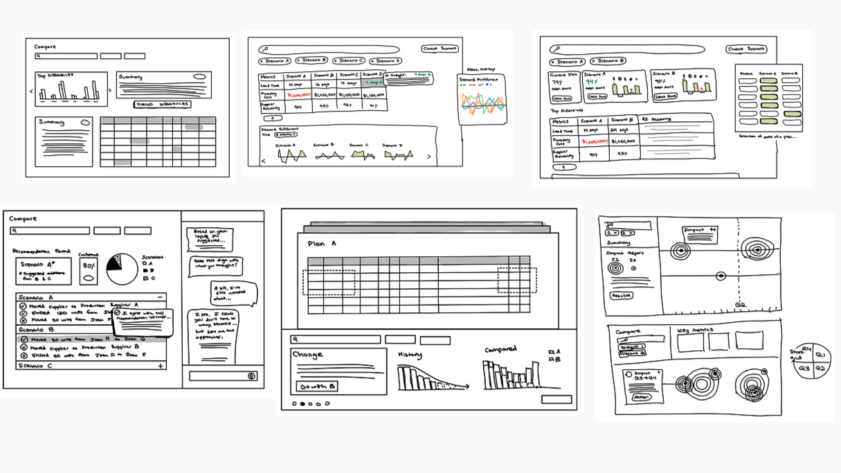 I started with sketching sessions, exploring different ways planners might compare plans and navigate critical information. Through iteration and feedback from 10 design reviews, several key decisions emerged: