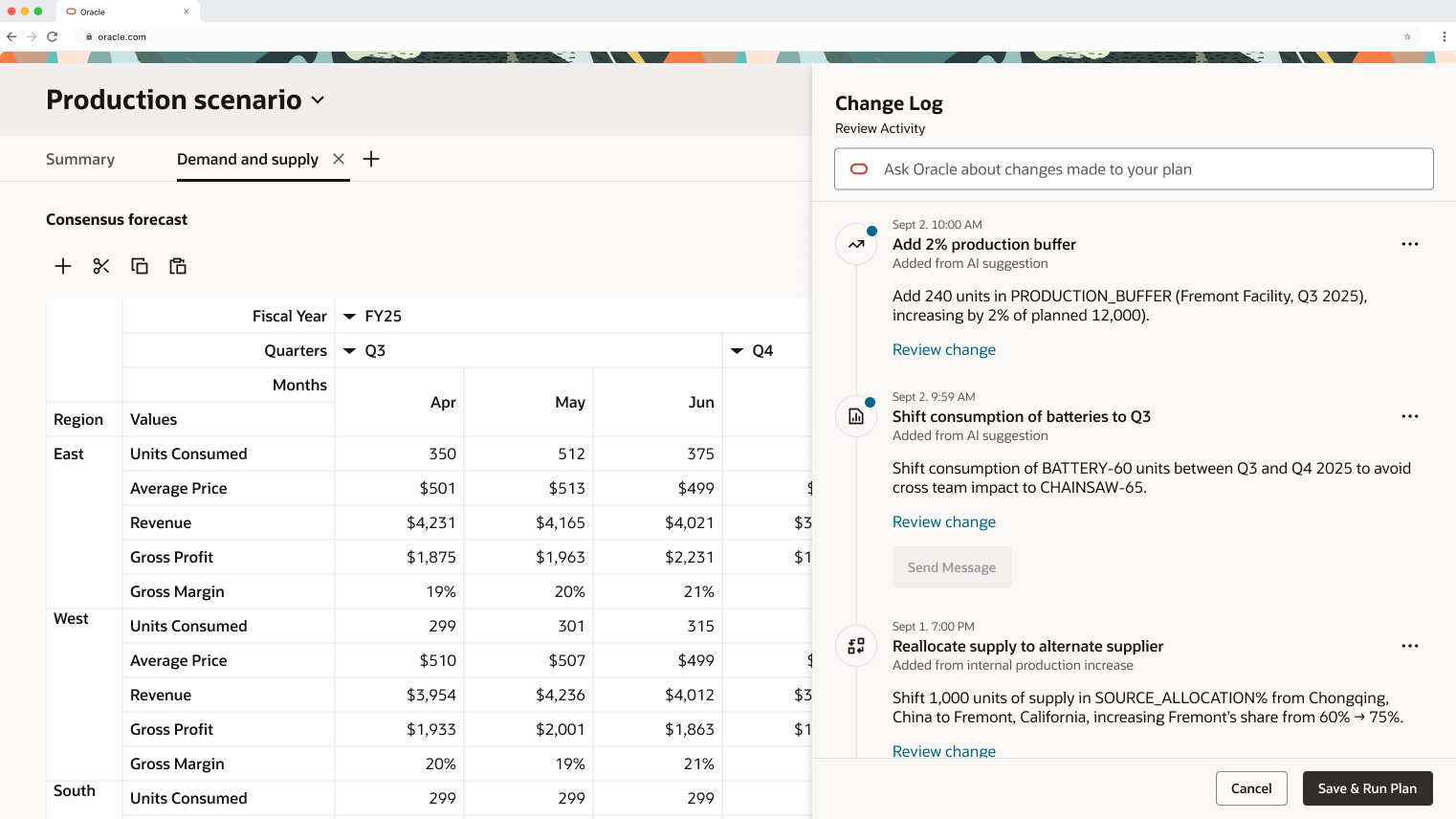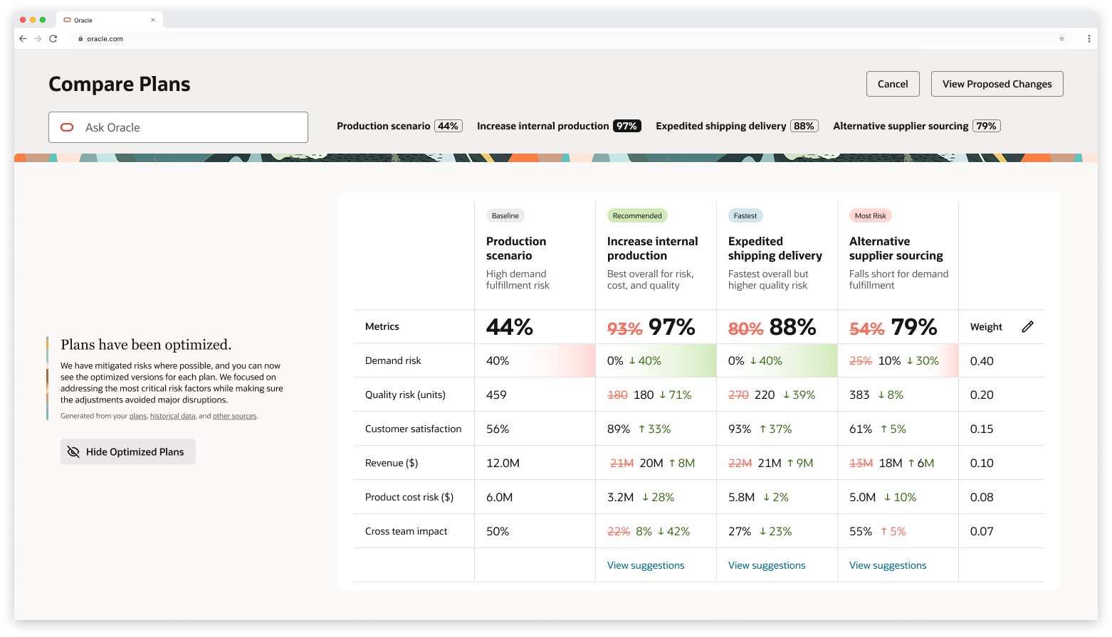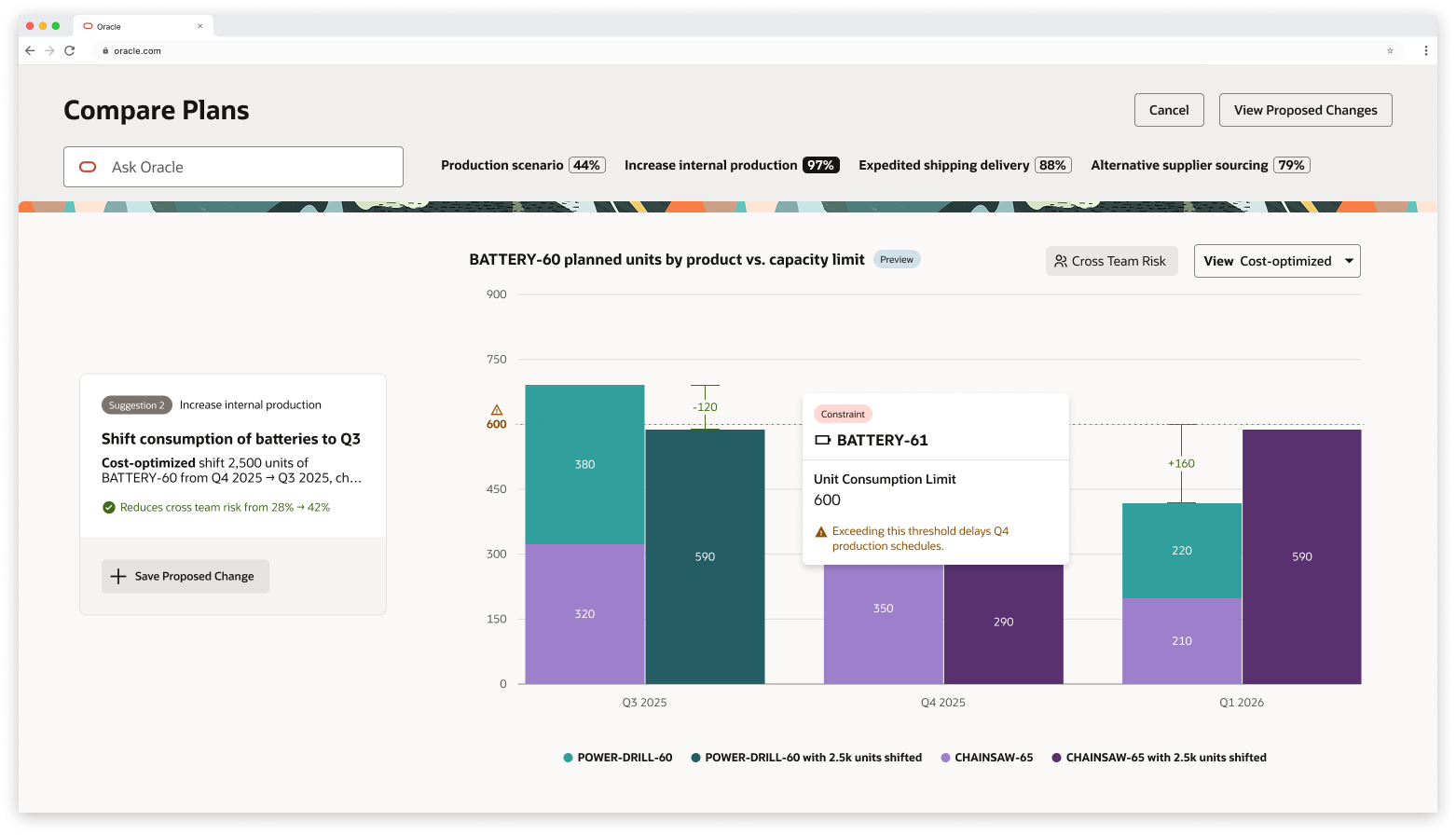 Compare: an AI-powered tool that surfaces critical differences between supply plan scenarios, uncovers hidden risks and ripple effects, and provides guided recommendations - transforming AI from automation into a collaborative colleague.